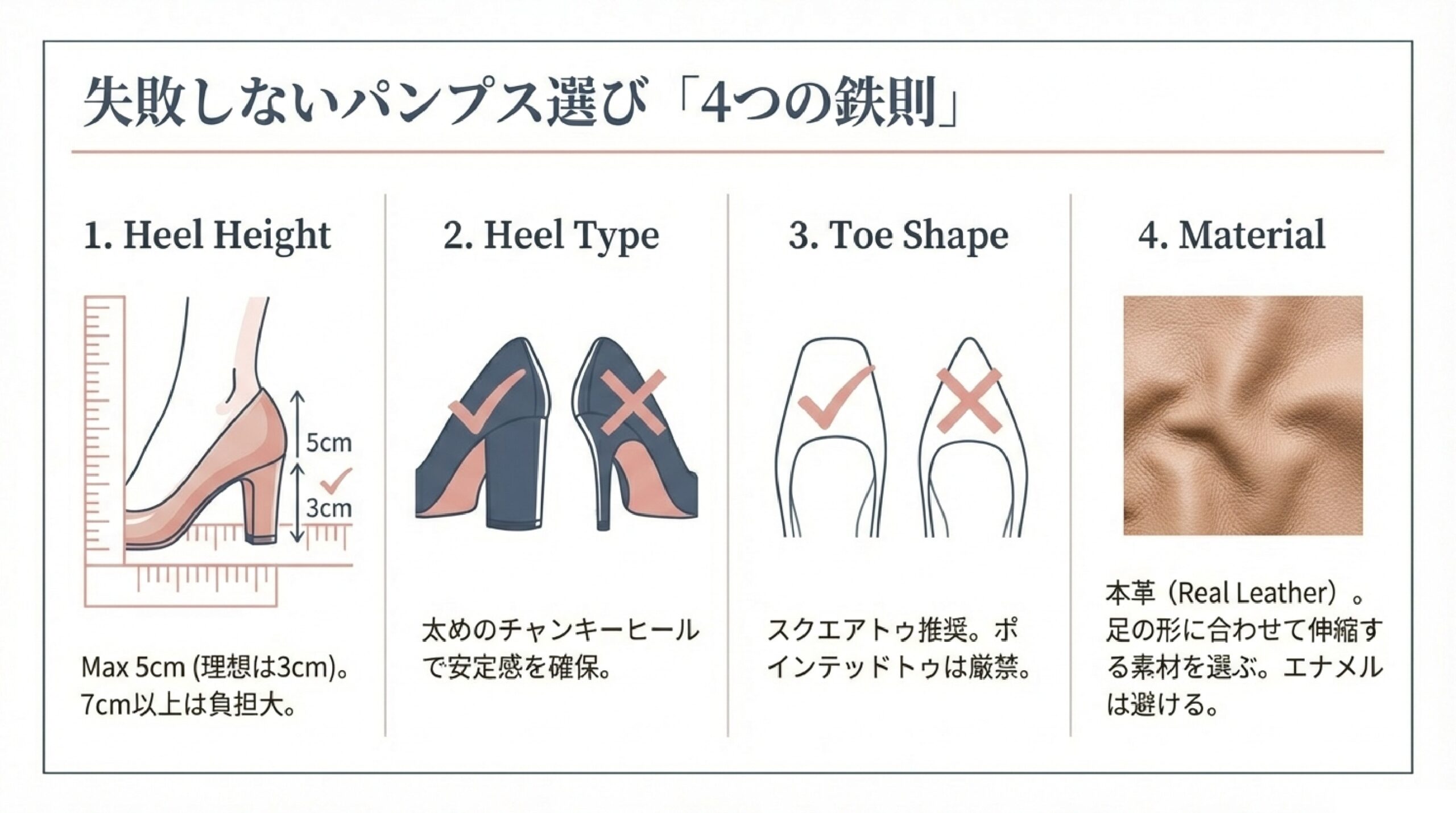 ヒールの高さは「最高5cmまで」をマイルールにしましょう。